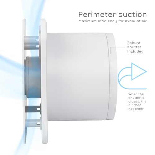 Turbionaire TREND 120 SWM Afzuigkap, Afzuiging, Ventilatie voor Badkamer, Keuken, Wand/Plafond, Frontpaneel Wit Opaak, Diameter 120mm, 120 m³/h, 23Pa, Terugslagklep, Stil 39dB, IPX4