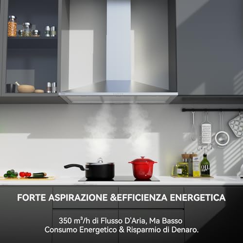 Sterke zuigkracht: Hermitlux 90 cm afzuigkap, 350 m³/uur luchtstroom, verwijdert effectief de geur van olierook. De afzuigkap bevat een aangepaste afvoerslang met een diameter van 150 mm/2 m.