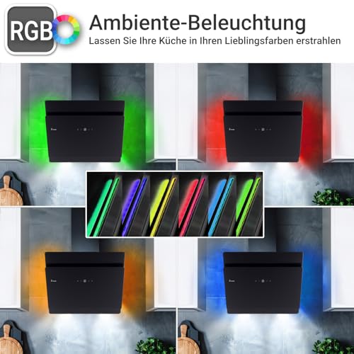 KKT Kolbe SOLO909SHCM Afzuigkap, wandbevestiging, roestvrij staal, zwart glas, wifi, automatische naloopfunctie, RGBW-ledverlichting, sensortouch-bediening