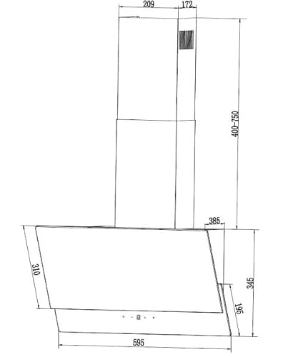 Montage: de hoofdvrije schuine kap is bedoeld voor muurmontage. Met de 135 cm lange kabel en de aansluiting van 150 mm voor de luchtmodus van de uitlaatlucht, kan dit eenvoudig in gebruik worden gesteld